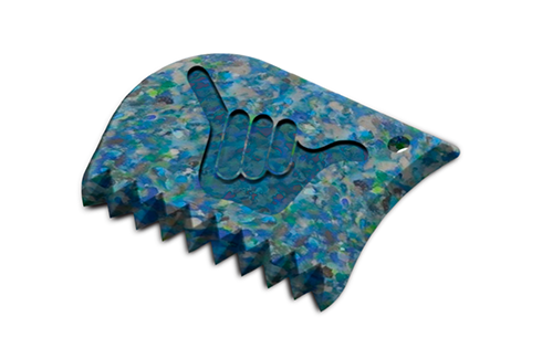 A bermuda híbrida vem acompanhada de um raspador feito com plástico retirado das praias da nossa costa, relembrando os bons tempos em que as bermudas de surf vinham equipadas com um raspador no bolso traseiro.