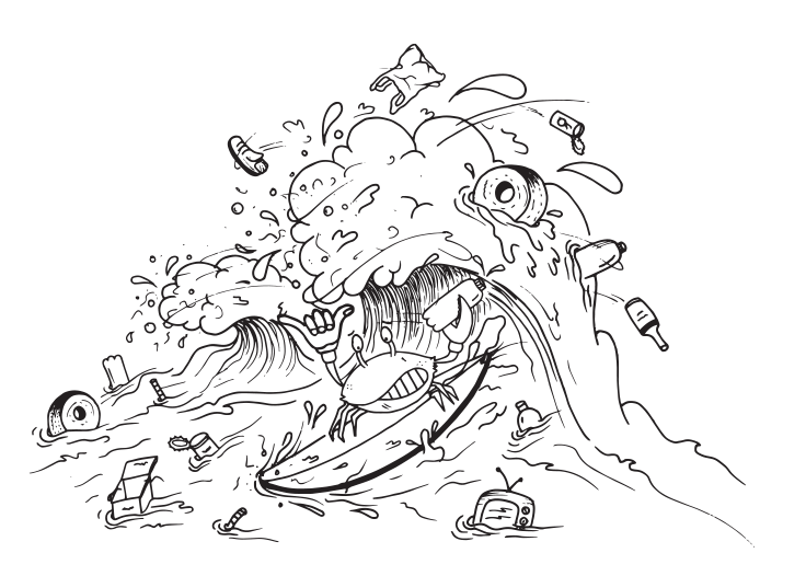 As estampas foram criadas pelo artista Fabio Gomide, também conhecido como SKT LIXOS, que expressou sua visão sobre a realidade atual das praias e oceanos poluídos. Sua interpretação faz um contraponto provocativo, convidando à reflexão sobre nossa responsabilidade de cuidar e proteger o planeta.