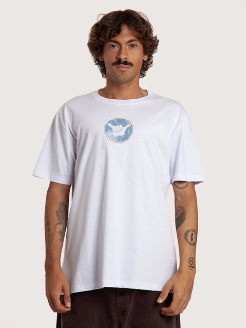 Camiseta Manga Curta Branca Masculina Hang Loose Sign